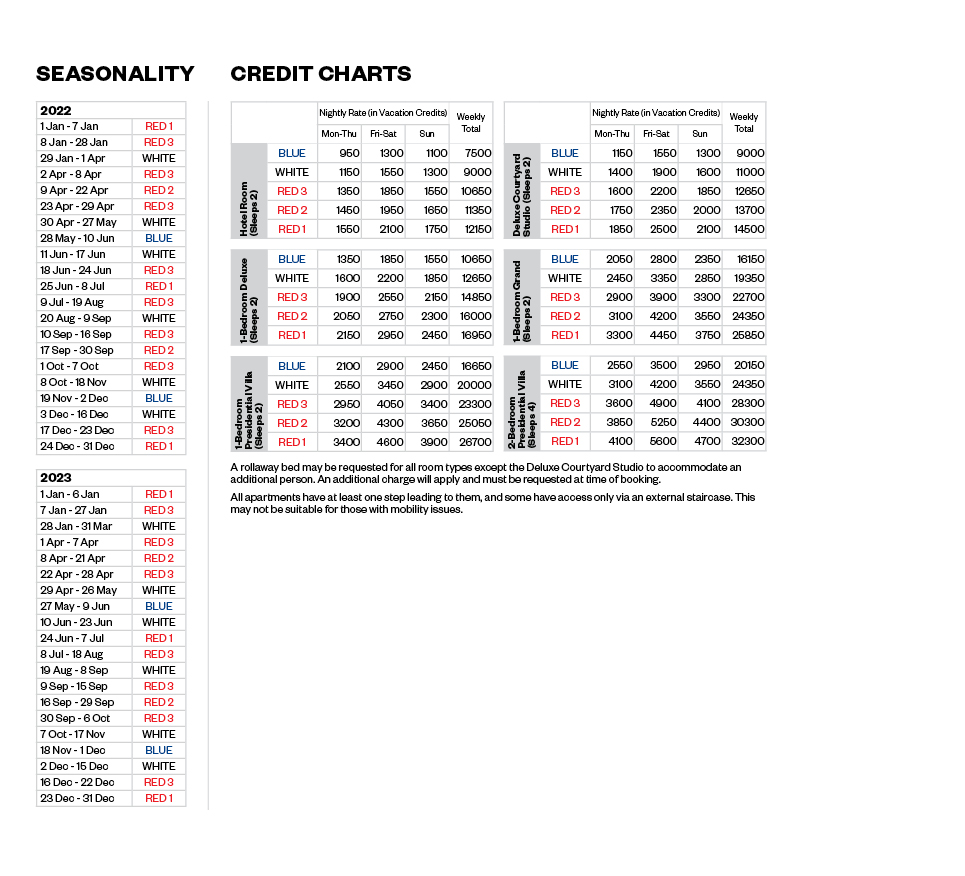 | 1 Bedroom Deluxe | |||||||||||||||||||||||||